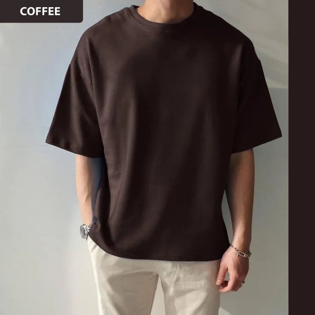 Solid Coffee Cotton Drop Shoulder T-Shirt